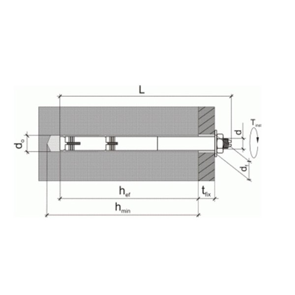 der Hinterschnitt im Spreizteil garantiert sichere Verankerung und führt zu einer gleichmäßigen Verteilung der Last. Zur leichteren Montage besitzt die Stahlanker Querschnitte am Bolzen.