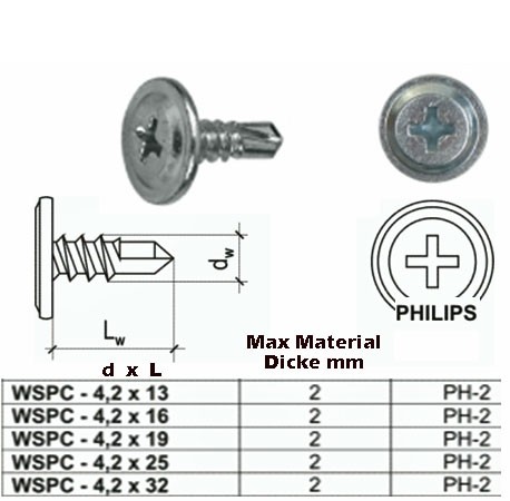 Mobile Preview: 4,2x19 selbstbohrende Schraube mit angepresster Scheibe 1000 Stück