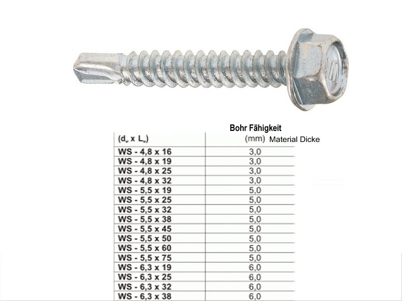 5,5x19 Sechskantkopfschraube mit Bohrspitze 500 Stück