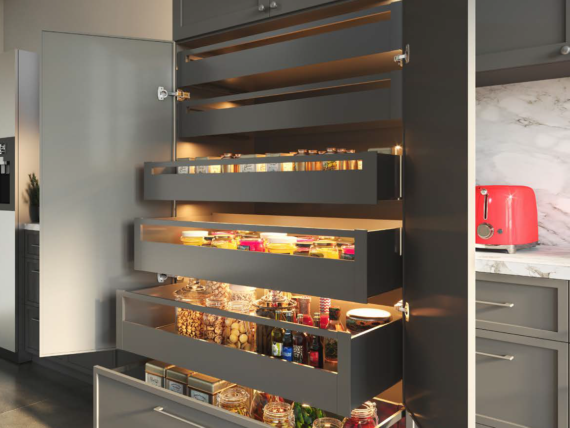 Das System AXIS-PRO ist mit einen Soft-Close ausgestattet was den Komfort der Nutzung zu jeder Tageszeit erheblich steigert. Der Soft-Close erhöht die Qualität der Schubladennutzung und der täglichen Küchenarbeit enorm. Der Vollauszug ermöglicht den Zugriff auf den gesamten Inhalt der Schublade, damit Sie alles direkt zur Hand haben. Es hilft auch, Ordnung im Inneren zu halten. Dank dem AXIS PRO-System ist es kein Problem mehr, selbst auf den hinteren Bereich der Schublade zu zugreifen.