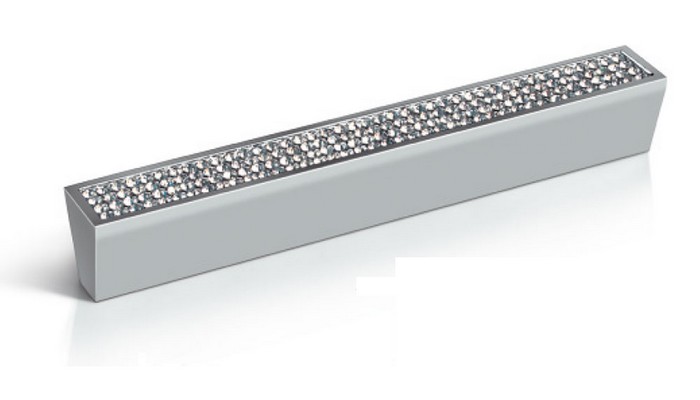 1 Glamour Design Aluminiumgriff mit Kristallglas Lochabstand 128 mm verchromt