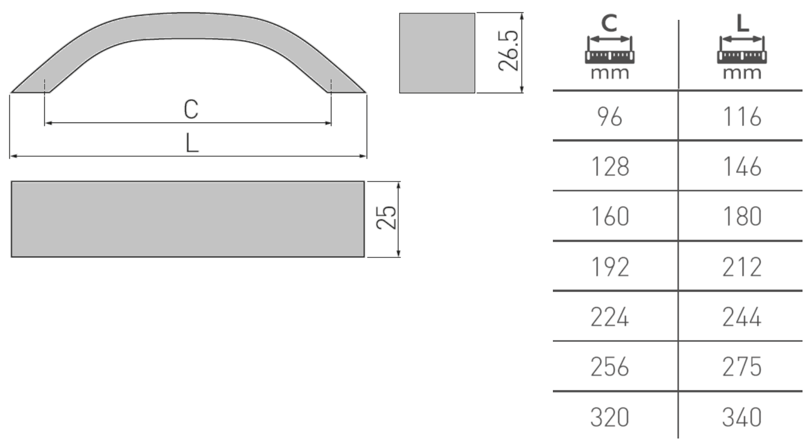 Möbelgriff UA-337 Aluminium - Schwarz - Lochabstand 96mm - 320mm