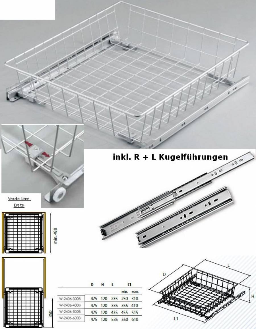 Ausziehkörbe bzw. Teleskopschubladen zum Nachrüsten in vorhandenen Schränken.
