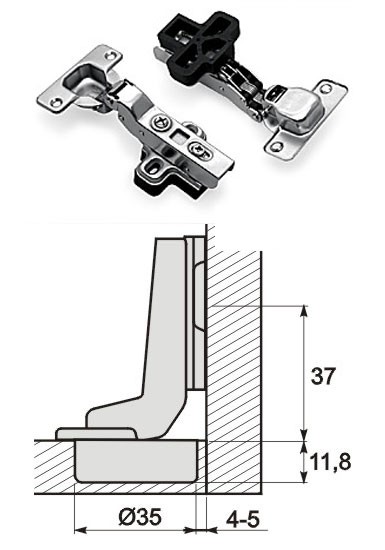 Das Scharnier schließt durch den Kolbenmechanismus - Hydraulikzylinder selbst Jahre lang.