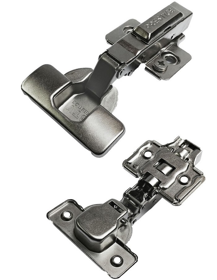 Das hydraulische Scharnier ZM-ECHC09-3DBEO aus der Prestige-Linie ist komplett aus vernickeltem Stahl gefertigt.