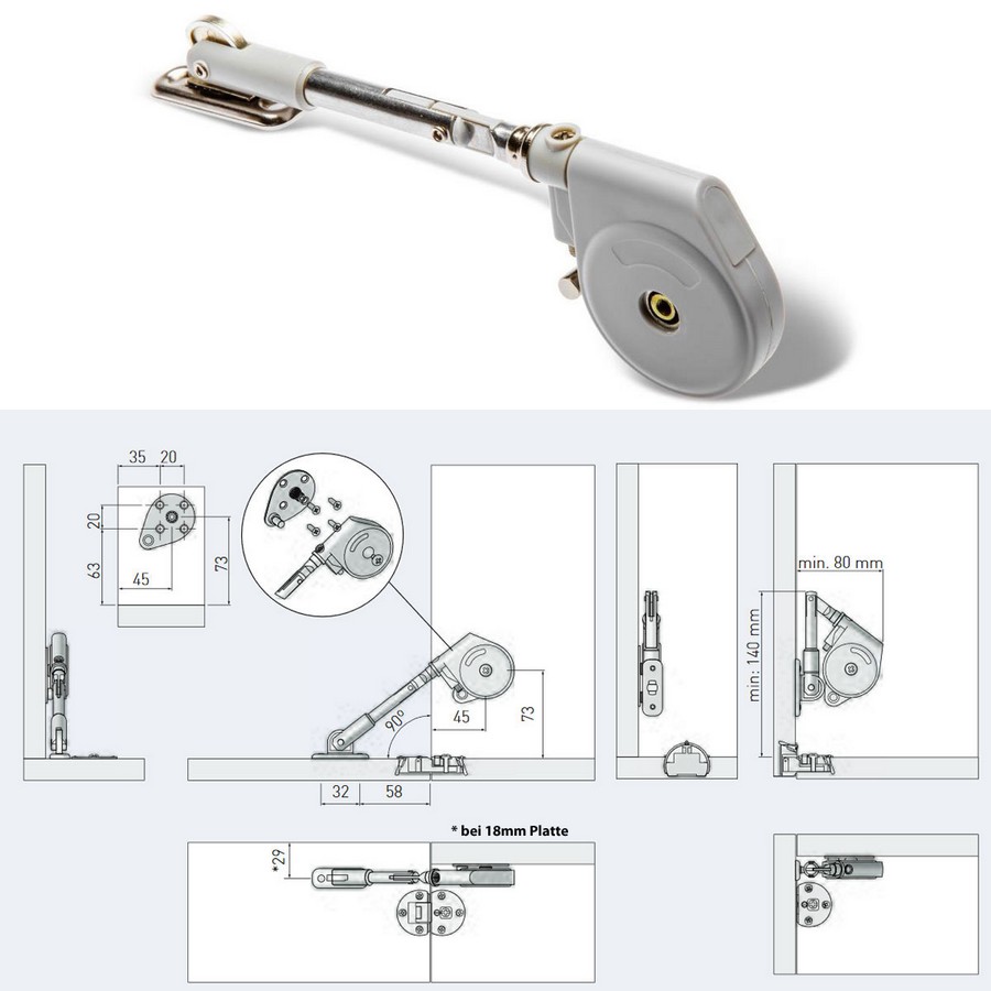 Der Klappenhalter ist mit einer Funktion der Verlangsamung ausgestattet, die eine reibungslose Öffnung und einen langsamen Klappenfall garantiert.