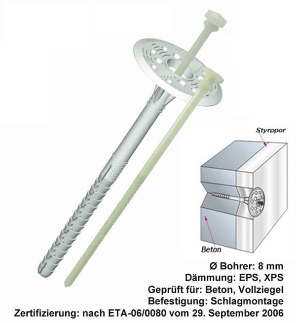 Zur Befestigung von Dämmstoffen z.B. Styropor, Holzwolle Leichtbauplatten,