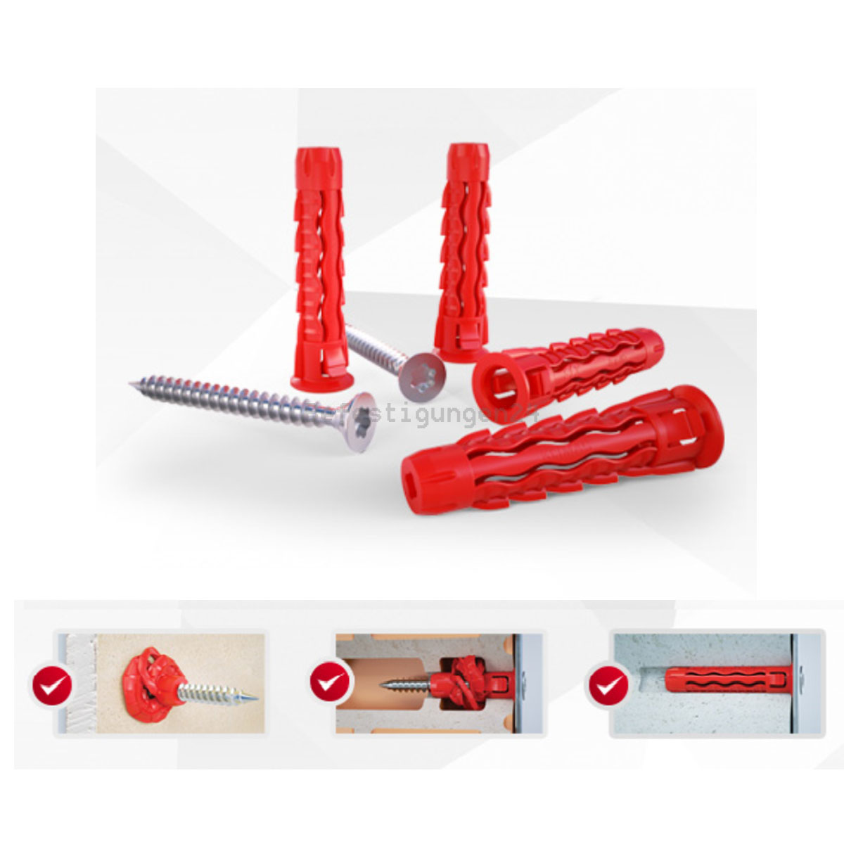 - Das einzigartige Bauart der Spreizkörpers sorgt für eine sichere Befestigung in allen Untergründen-Baustoffen: