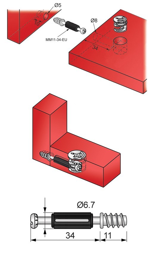 1 Einschraubdübel für Exzenter mit Eurogewinde und Kunststoff
