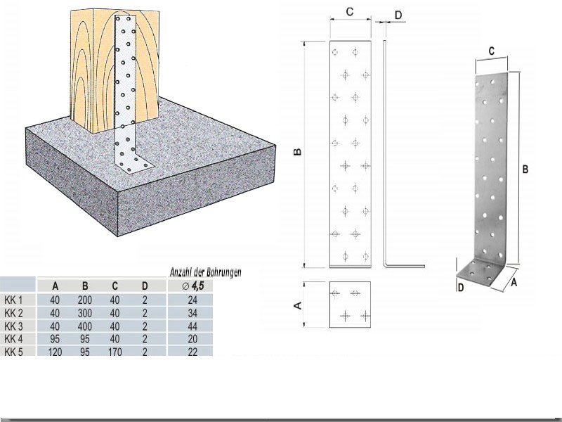 Flachstahlanker für die Verankerung von Holzkonstruktionen auf Beton
