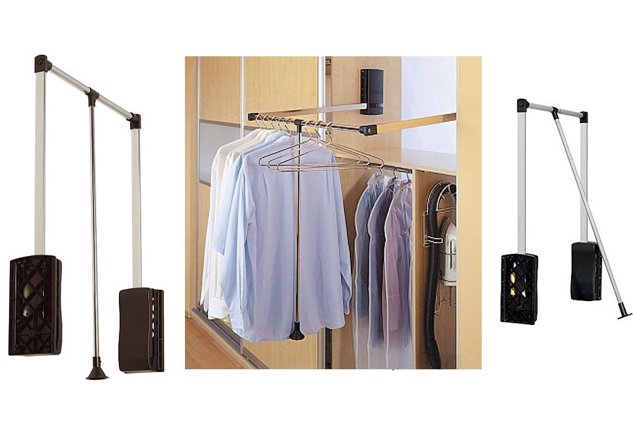 Garderobenlift mit Öldämpfung für Schrankbreite 600-830 mm schwarz.