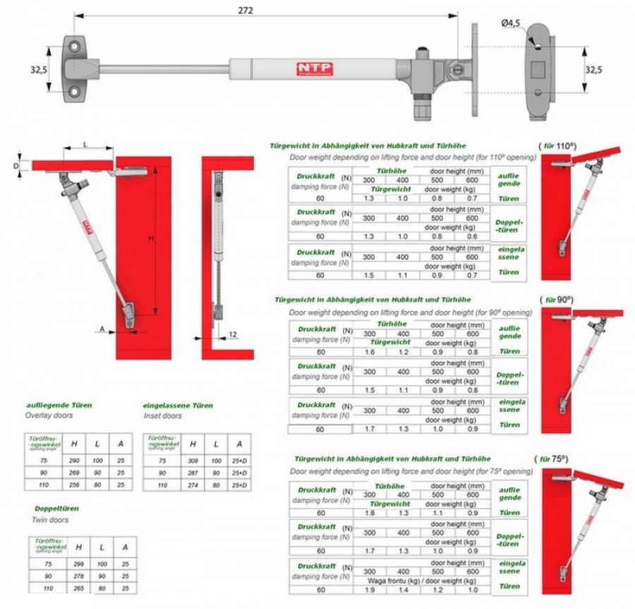 Die Federkraft (Druckkraft) ist abhängig vom Verhältnis zwischen Größe und Gewicht der jeweiligen Klappen, wählen Sie bitte die benötigte Federkraft aus unserer Richtwerttabelle für die max. Federkraft aus. Diese Gasdruckdämpfer sind sehr leicht zu montieren, wartungsfrei und optisch sehr ansprechend (weiße Farbe).