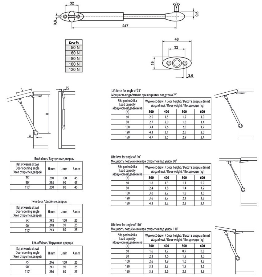 Größe und Gewicht der jeweiligen Klappen. Wählen Sie bitte die benötigte Federkraft aus unserer Richtwerttabelle für max. Federkraft aus.