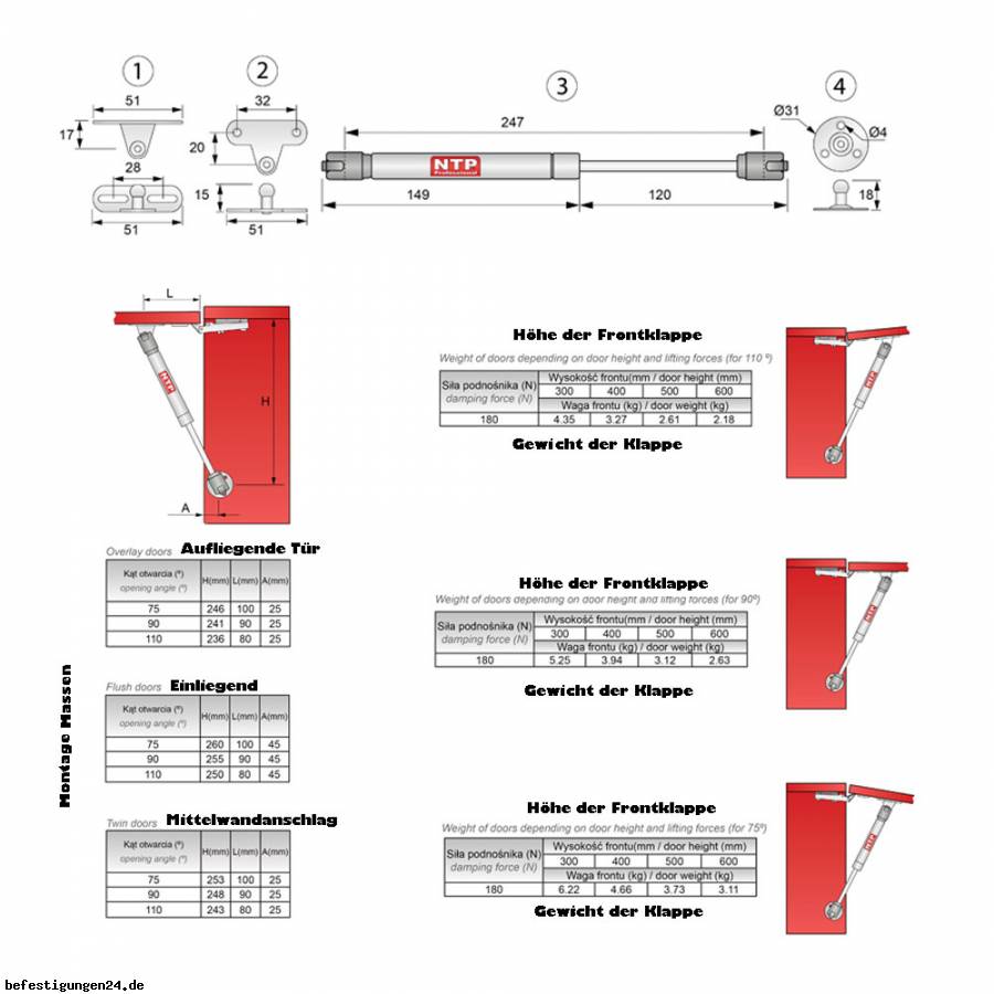 Größe und Gewicht der jeweiligen Klappen. Wählen Sie bitte die benötigte Federkraft aus unserer Richtwerttabelle für max. Federkraft aus.