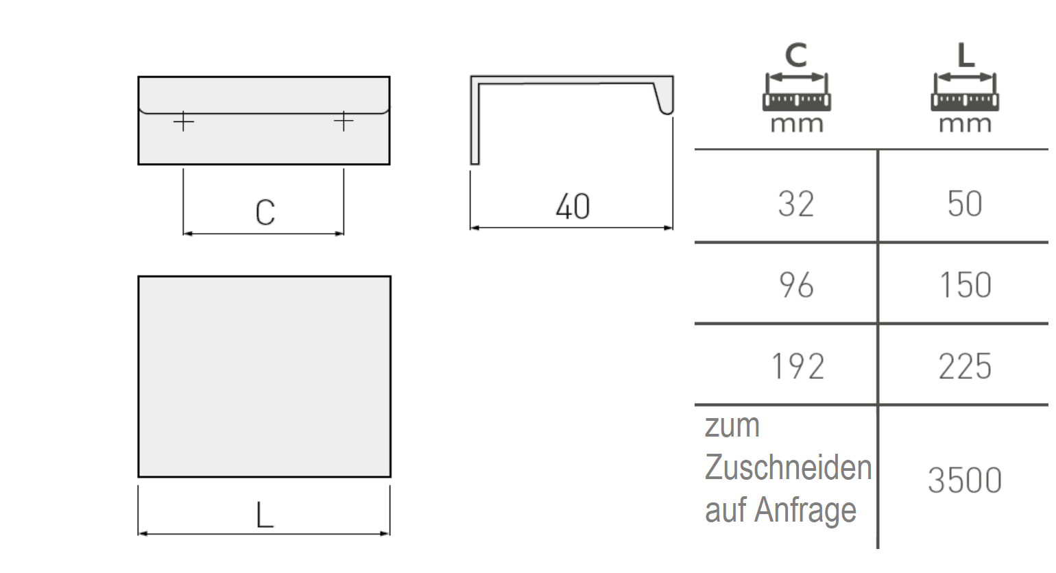 Griffleiste HEXI - Aluminium - Chrom - Schwarz Matt - Weiss Matt - Lochabstand 32mm - 192mm