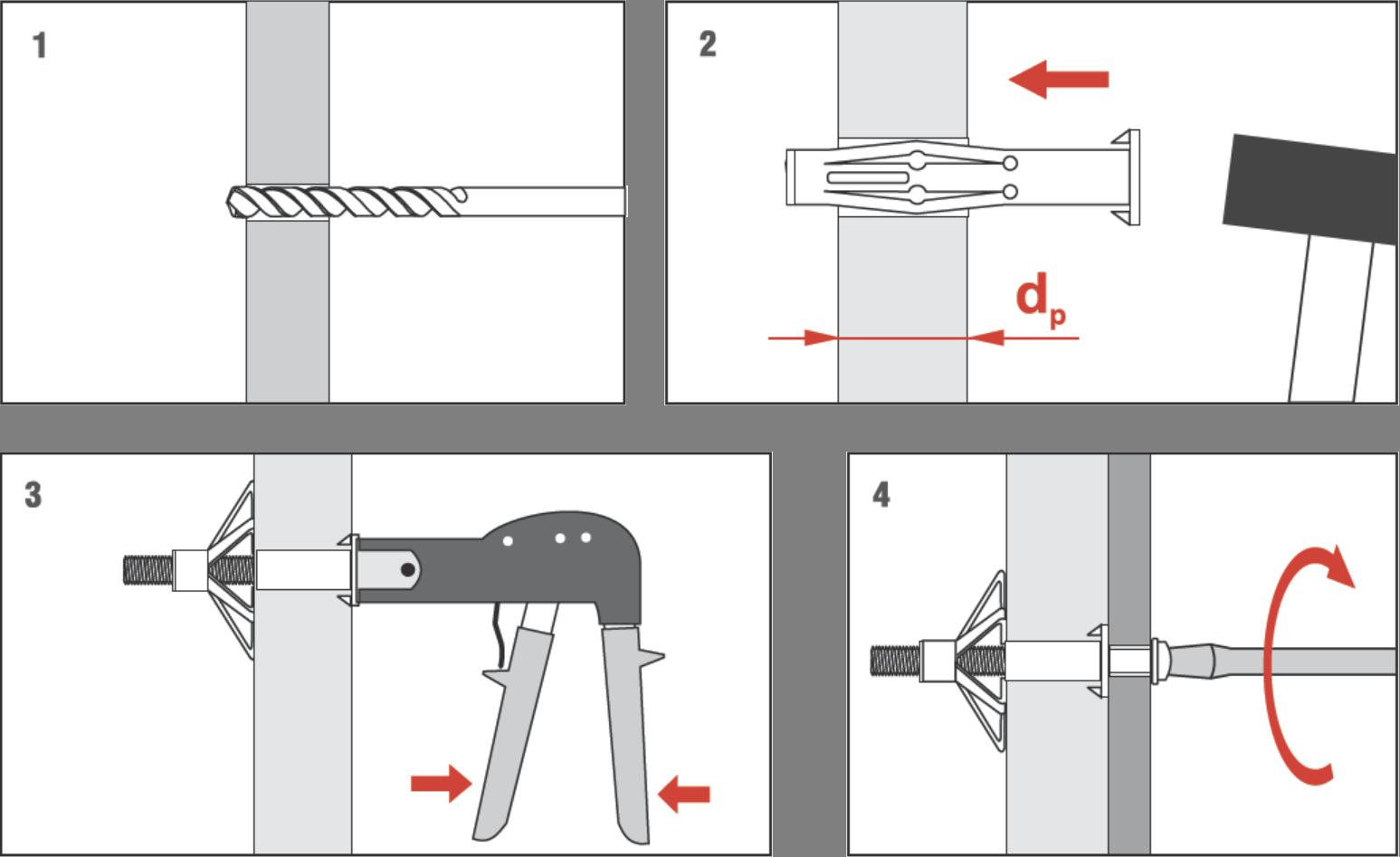 Dieser Hohlraumdübel ist ideal für die Befestigungen in Platten und Tafeln, Hartfaserplatten, Hohlziegeldecken, Decken hinter denen sich ein Hohlraum befindet (Hohlkörperdecken). Auch geeignet zur Befestigung von Lampen, Regalen, Gardinenleisten, Kabelkanälen, Bilderrahmen, kleinen Boilern, Garderoben, Latten und Schienen, Konsolen, Rohrschellen etc.