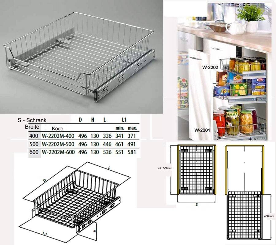 Korbschublade-Unterschrankschublade zur Montage hinter Auszugsfronten ohne