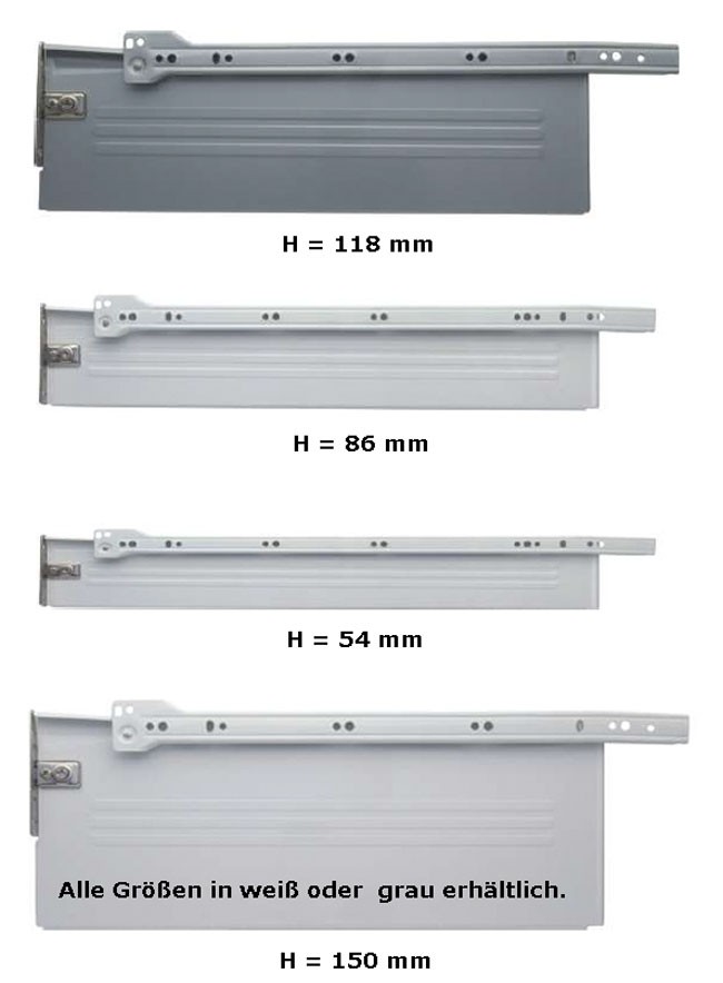 Metalbox Set Höhe 86mm Länge 450mm Weiß