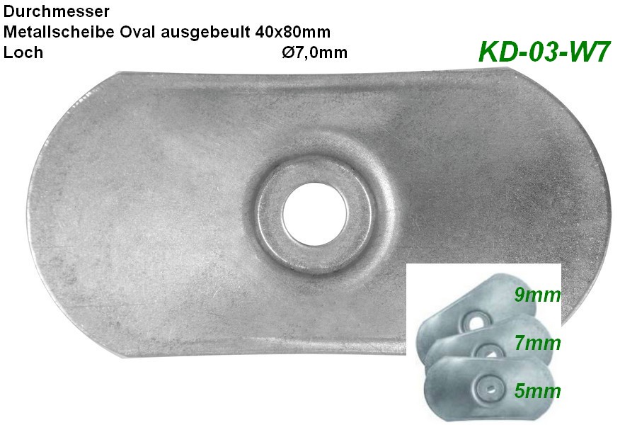 100 Stück Metallscheibe Oval ausgebeult 40x80 und 7,0mm Loch - KD3-W7