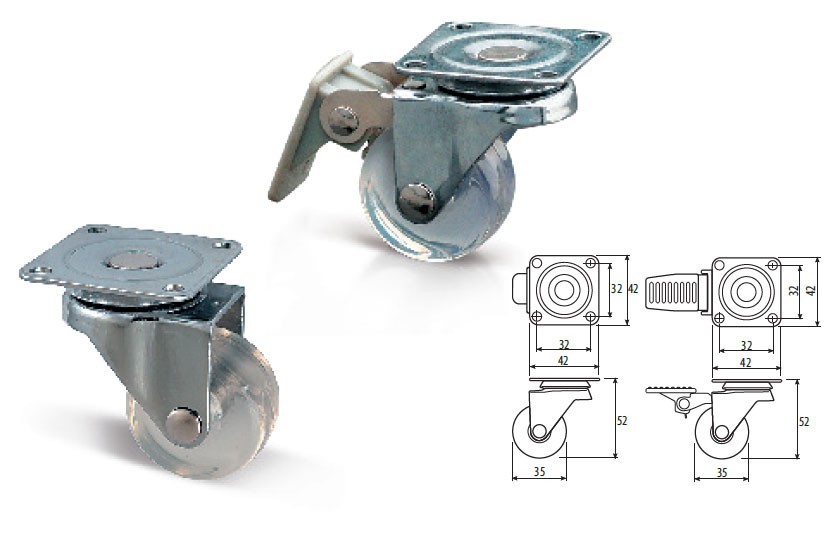 1 Möbelrolle Ø35 mit einem Gummirad ohne Bremse