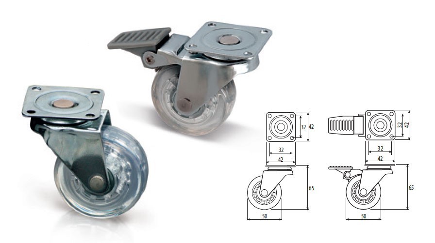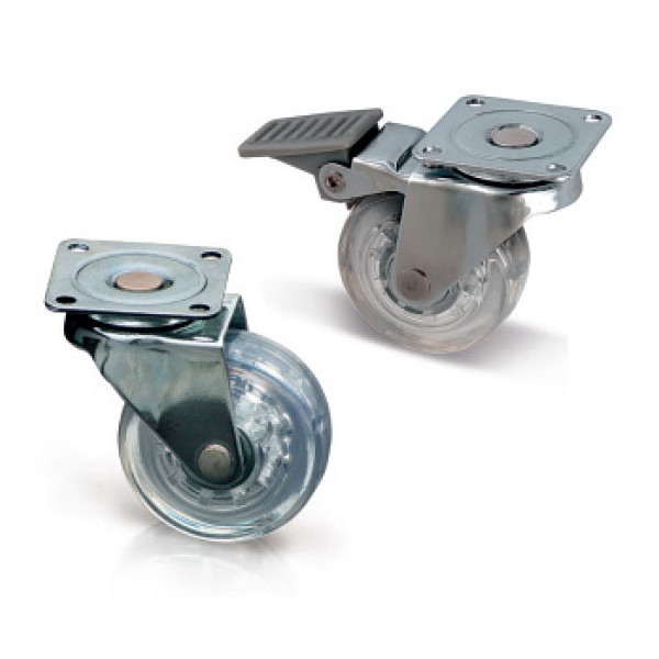 1 Möbelrolle Ø50 mit einem Gummirad ohne Bremse