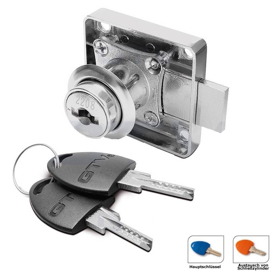 GTV Möbelschloss, Aufschraubschloss mit codiertem Schließzylinder aus Stahl + ZnAl.