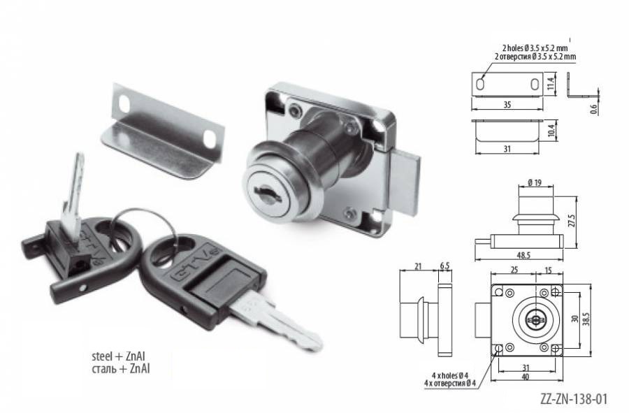 Mobile Preview: Möbelschloss mit Klappschlüssel verchromt
