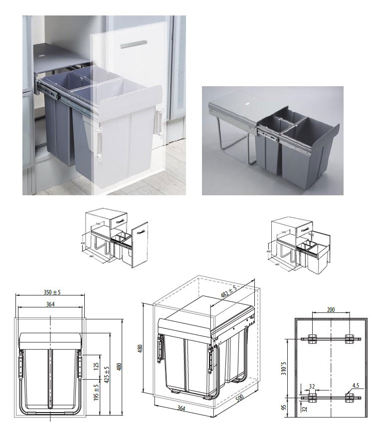 Mülltrennsystem / Abfalltrennung für Unterschränke mit Frontauszugsystem