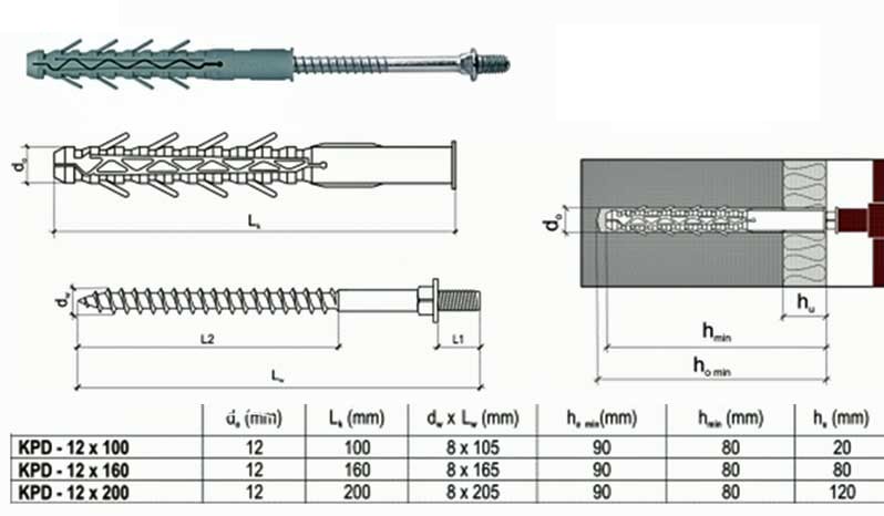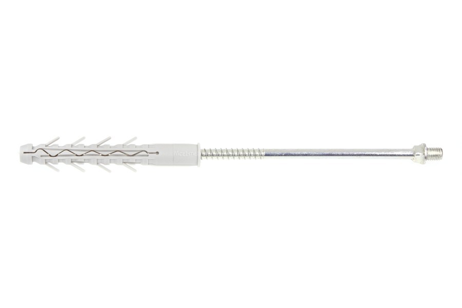 Rahmennageldübel aus reinem Nylon mit verzinkter Nagelschraube und metrischem Gewindekopf.