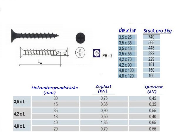 Schnellbauschrauben 3,5x35 Grobgewinde, 1000 stück