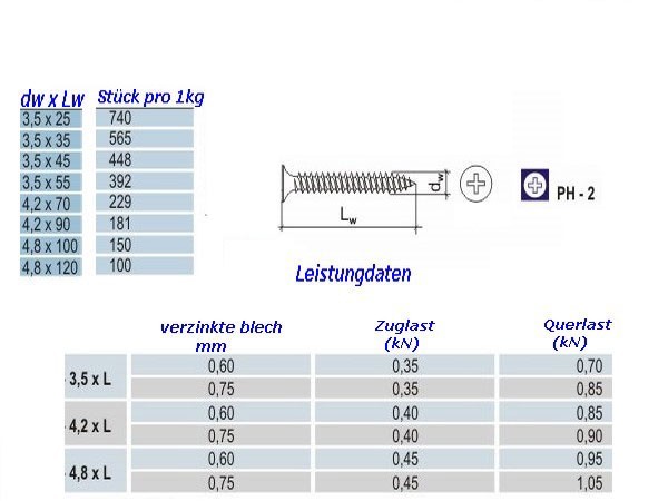Schnellbauschrauben 4,2x70 Feingewinde, 250 Stück