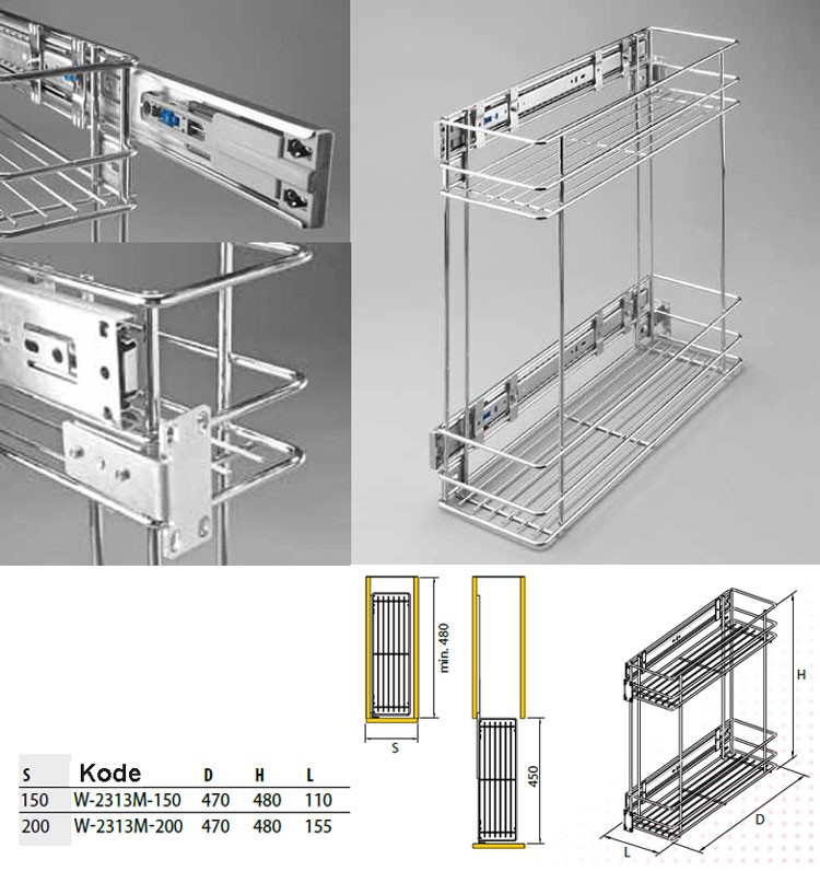 Unterschrankauszug Frontauszug für 150mm Schrankbreite,
