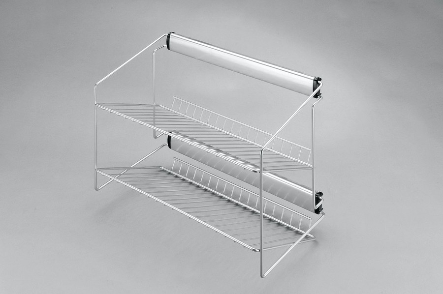 Schuhregal mit 2 schrägen Ablagen für die Schuhe, Rechts und Links montierbar.