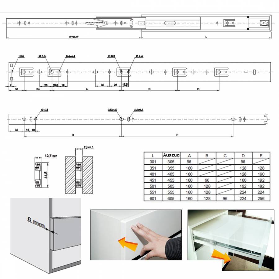 - Lieferumfang: 1 Paar, 2 Stück Vollauszugführungen.
